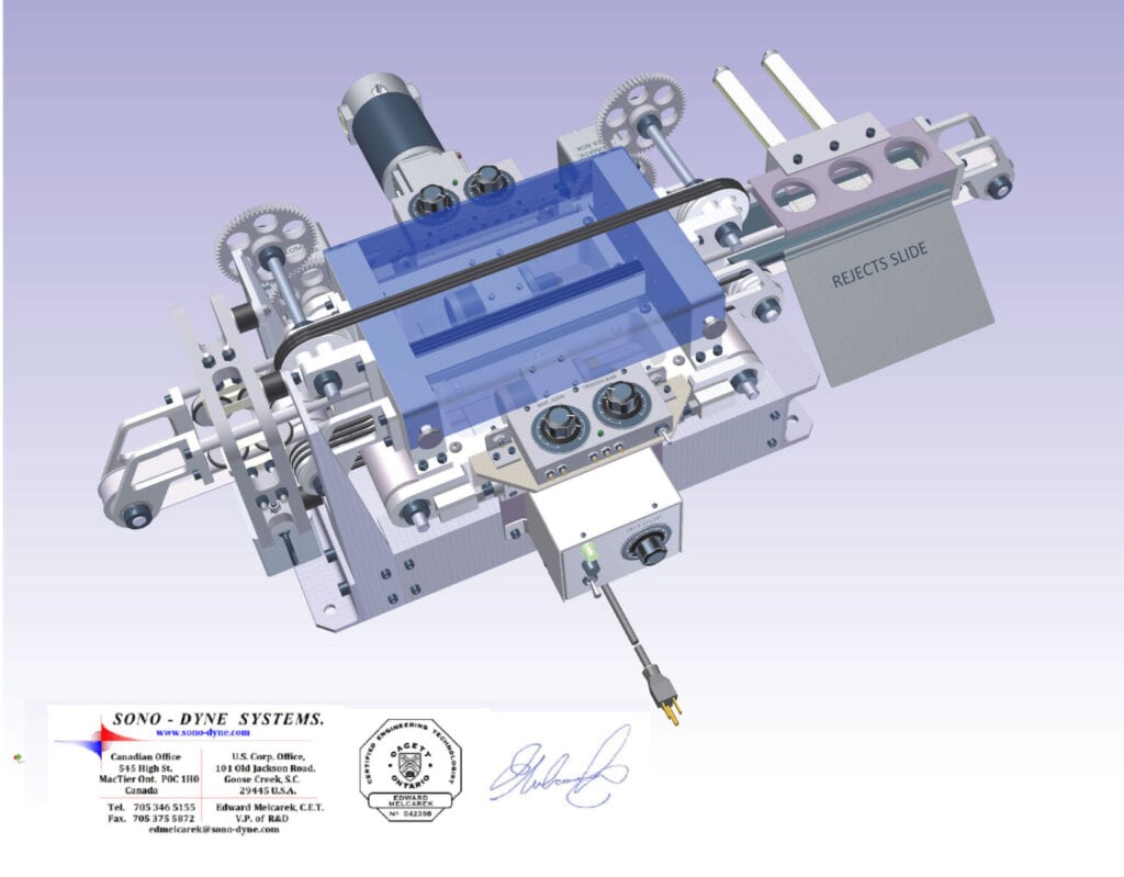 There are two photometers calibrated to a level that’s consistent with a dry container. When they see a wet container, the UV photometers trigger a reject mechanism on the egress side of the machine.