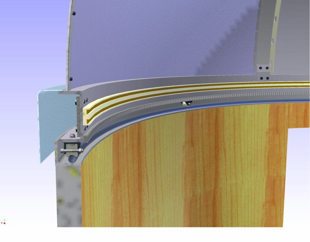 Fiberglass spherical quadrants are 1/8″ thick and weigh half as much as HDPE versions. Our fiberglass dome quadrants do not need any structural internal bracing or framing whatsoever. Once fastened to the arches and dome framework, they contribute to the structural integrity of the dome.